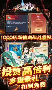 6、投资收益:登录、闯关、成长低投资便可获得10、30、100倍的超高返利,还有投资更可激活绝版神器,暴涨十亿战力,立返15000仙玉,还可领取价值88888元豪华礼包