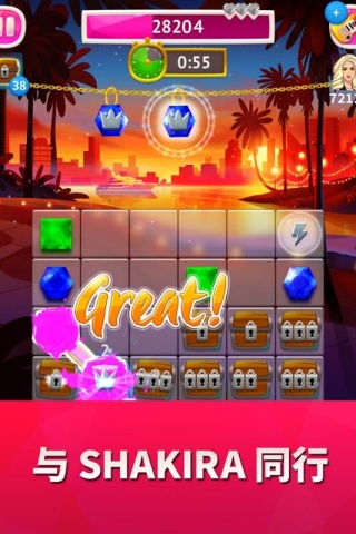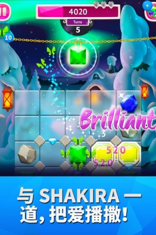 2.视听享受 多种组合消除方式,炫目的光效和夏奇拉的热辣歌曲,为你带来视听盛宴。