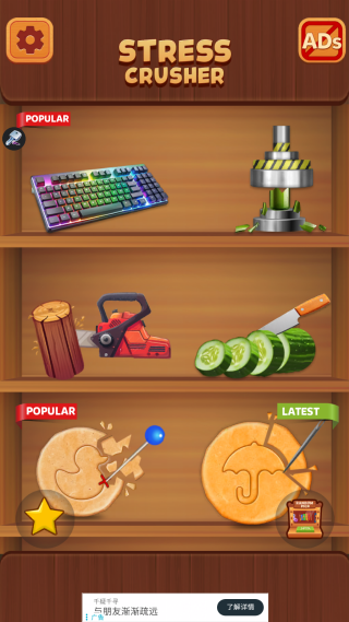 压力粉碎机休闲游戏是一款主打解压的休闲闯关小游戏。它能让玩家在轻松有趣的过程中,把日常生活里的压力统统释放掉。游戏玩法简单易懂,画面十分治愈,配上舒缓的音乐,再结合充满趣味的闯关模式,给玩家带来了一种全新的、特别棒的放松方式,让大家尽情享受减压的快乐。