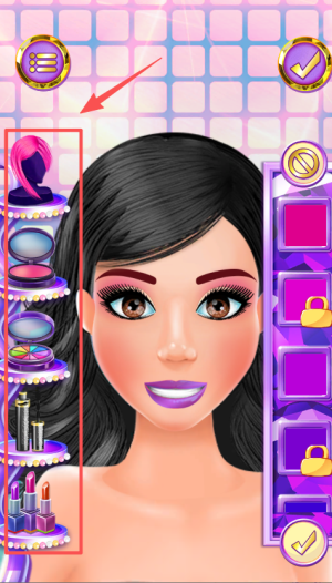 1、初次游玩时,先从简单妆容入手,比如用一字眉搭配闪亮腮红,熟悉化妆工具使用,再尝试复杂烟熏妆。