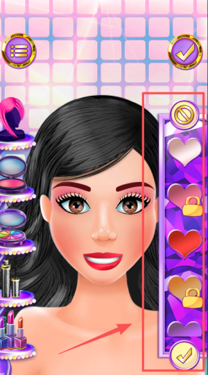 3、点击左侧的按钮,可以给公主切换发型,化上精致的妆容。