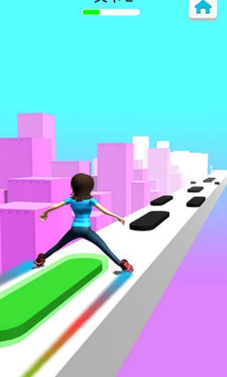 4.采用简约清爽的卡通画风,有效减轻了长时间游戏的视觉疲劳。配合流畅的跑酷节奏和动感的音效,为玩家营造了一个轻松愉快却又紧张刺激的空中轮滑世界。
