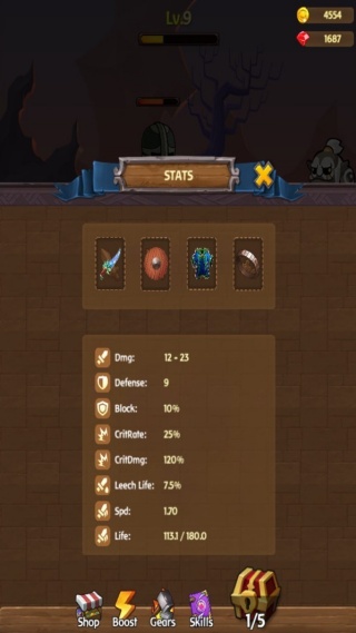 3、注意收集界面中的道具碎片,凑齐对应数量可解锁新装备或技能,同时与场景中的怪物战斗,积累经验和金币,逐步提升等级。