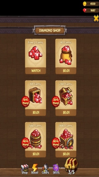 4、在钻石商店,若想获取免费钻石,可选择 “Free 2 Gems”看广告得2宝石的选项。