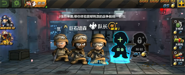 1.可以升级装备,这里的装备不断进行升级,让你的士兵有强大战斗力。