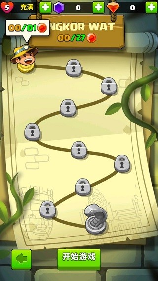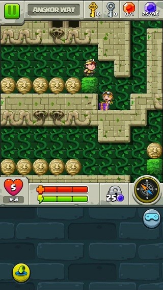 1、本质上是益智型冒险游戏,主角需要收集各种宝石和宝箱,同时避开危险,比如巨石,比如蛇和喷火的机关。
