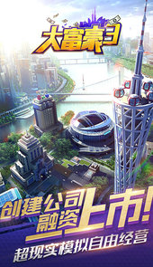 想要在现实经商中大展拳脚却苦于资金、人脉、商机等各方面捉襟见肘?连个取经的机会都木有就已经要逼上商场杀敌?在《大富豪3》你岂止得到一个创业经营的机会,你甚至得到整整一座梦想岛!在游戏中你可以变身肤白貌美的甜姐儿,也可以饰演睿智冷静的高富帅,选择个性及背景各异的角色来演绎,在这片土地上任性圈地盖楼开店,4大行业,40种店铺类型,无论您想做娱乐业大亨,还是餐饮界的翘楚,都可以在这实现你的目标。店铺相互搭配经营还能互惠互利,产生更高的利润!商业模式随你任意玩转组合,想怎么赚就怎么赚!还可以利用建造宏伟的世界奇迹建筑吸引人流量,有助店铺营收。你作为一座城市的创造者,只要每天动动手指,大把钞票金币就会哗哗地流入你的荷包,体验富豪一般的数字人生!