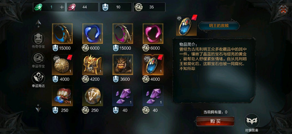 更新内容:活动期间幸运夺宝限时上架新品传奇魔法石-明王的救赎,下架远古血晶。