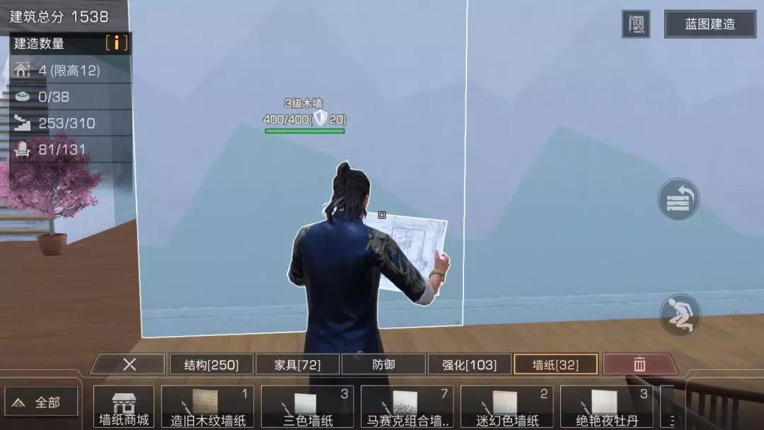 点击建造中的墙纸选项,即可选择墙纸商城进行挑选。