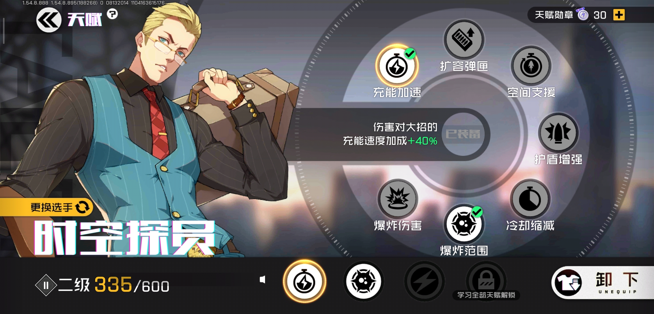 (公测的图,内测玩的旧,所以二级熟练别怪)(我还没加完,没钱了QWQ)推荐冷却缩减(减少传送CD战略技能拿来逃命特别好用)充能加速(每次开大招时候的不可一世,想想就害怕,我自己都不知道那时候我是谁)爆炸范围(伤害足够,增加范围即可)(个人见解)其余:弹夹扩充五发子弹太鸡肋.......(因为菜,打不中,多五发也没用,因为辅助瞄准,所以压枪不存在,真高手也不在乎这五发子弹,而且打肉你加这五发还是2-3弹夹,打脆皮全中50发也绰绰有余)爆炸伤害(大招伤害)基本贴脸炸除了火神和熊都能死(这两大残,再加伤害...没必要,因为一开始这玩意还有十五秒的加速与无限子弹时间(后坐力最小))基本还能打两下,也差不多死了其余两个我觉得可以带但是为什么我不推荐?前面已经说过我是舍弃了辅助这一定位,不是这个天赋不强的意思——————————额外扩充包(我忘了那个叫啥):建议护盾