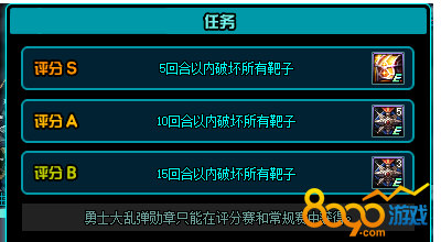 在评分赛中,S评分需要在5回合内破坏2个靶子,A评分需要在10回合以内破坏2个靶子,B评分需要在15回合以内破坏2个靶子。因为每天参与次数是无限的,所以大家有很多的联系机会,只要第一天找好感觉了,后面都会很轻松的。