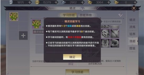 精灵有两种类型的技能,分别为核心技能和被动技能,核心技能是在获得精灵时随机得到的,而被动技能则是需要通过消耗消耗相应的精灵技能书才能够学习。所以,在获得精灵的第一时间别忘了关注一下精灵的核心技能哦,如果技能不是三个的话就要考虑一下换一只精灵了。
