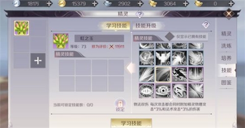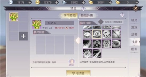 对于法术攻击型精灵,则可以考虑一些提升法术攻击、法术穿透、法术暴击的技能,例如法术视界、高速技能、法术专精等。