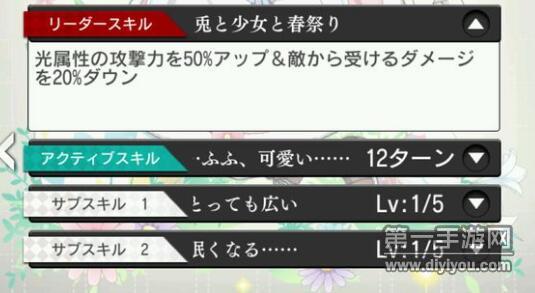 被动技能1∶队伍的体力在85%以上期间,每一回合发动,受到敌人的攻击下降75
