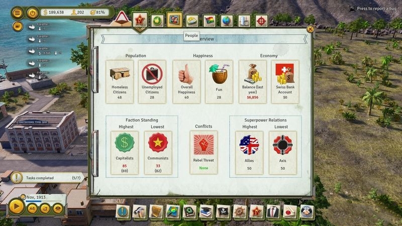 海岛大亨6如何组建咸鱼政府?海岛大亨6政府组建内容详情一览!海岛大亨6Tropico 6是由Haemimont Games制作,Kalypso Media Digital发行的一款模拟经营类游戏,其首支预告提到卡斯特罗去世,英国脱离欧盟,西班牙银行危机,试射弹道导弹,以一连串近期发生的国际大事件为背景,然后又通过手机告诉玩家是时候回到游戏中了。我们今天来看看海岛大亨6如何采取更加稳固的独裁政府。