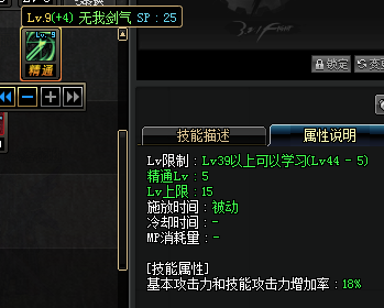 无我剑气下版本职业平衡中剑魂的新增技能,20级被动,5级精通,15级上限,技能效果是每级增加2%的基本攻击力和技能攻击力,也就是说精通后加10%技能攻击力,最多能加30%。