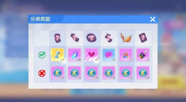 易拉罐属于可回收垃圾,烟头和面膜属于其他垃圾,手机属于有害垃圾,烂苹果和残枝落叶属于厨余垃圾(小编也不太明白残枝落叶为什么属于厨余垃圾)。玩家将垃圾分类正确可以获得不同的道具奖励,分类错误只能获得18酷币,易拉罐可以获得1个时间沙漏,烟头获得88能量水晶,面膜获得1个鹊毛,烂苹果获得一个紫色家园币,残枝落叶获得海星道具,手机获得一个喷漆。