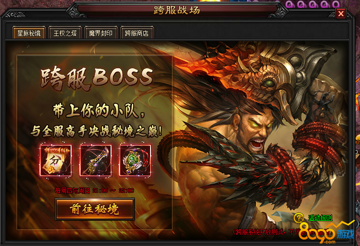 首先秘境的开启时间是每周四和周日的晚上九点至十点,秘境会在开服后第八天后出现,随着开服时间的增长,对战力的要求也是越来越高的,在星脉秘境内是无法穿戴装备的,在秘境内死亡是只掉落身上穿戴的装备的,背包物品不掉落的,道具也是无法丢弃的,活动是一个小时,活动结束后会被自动传回本服务器的,玩家在这期间可以随时退出秘境,再次进入需要等2分钟,秘境内有大量精英boss,八只镇守boss,最后是大boss,大boss必须在八只镇守boss杀完之后才会出现,而且必掉红装的,秘境内还有大量秘境宝箱,击败boss和开启宝箱都会获得秘境积分,可以在跨服商店购买星石提升大量战力。