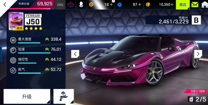 实际使用上J50的手感也非常的接近于488 GTB,毕竟师出同门,所以玩家们如果不是对法拉利情有独钟的话,其实有488 GTB基本上就可以不用去想办法获取J50了。J50尽管比兄弟车488 GTB慢点,但是在B车重同样是非常强的存在,如果没有488 GTB的玩家去肝一台J50是非常好的选择。