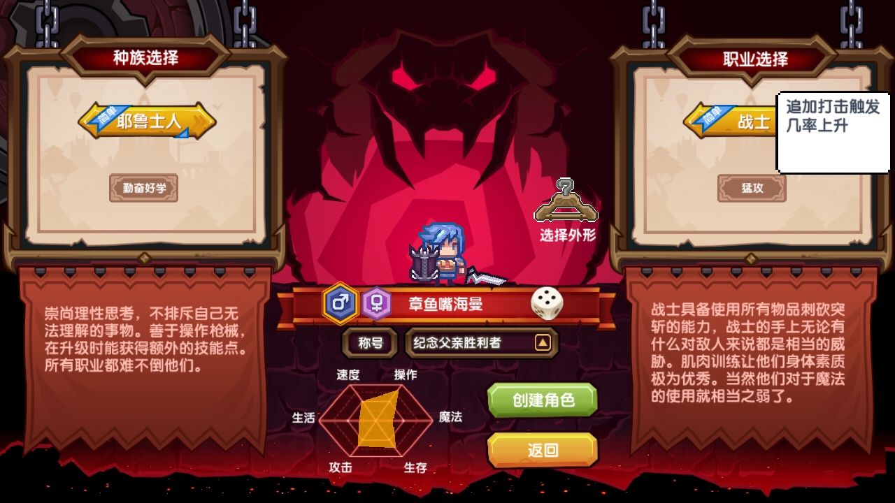 事先说明本游戏无法直接转职,所谓转职,即使用其他角色的玩法武器。