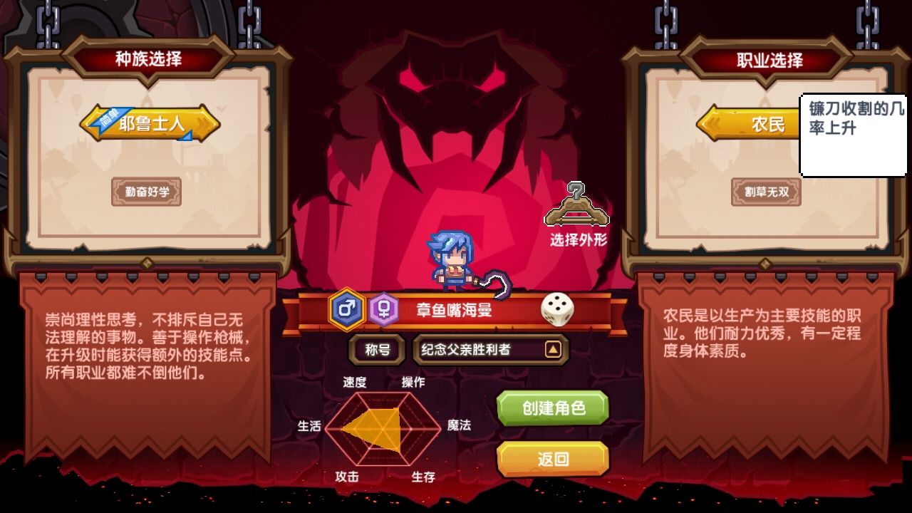 生活系福音(并不)——农民(被动+5%收割几率),一个非常弱小的职业,实在看不出他要哪点优点。