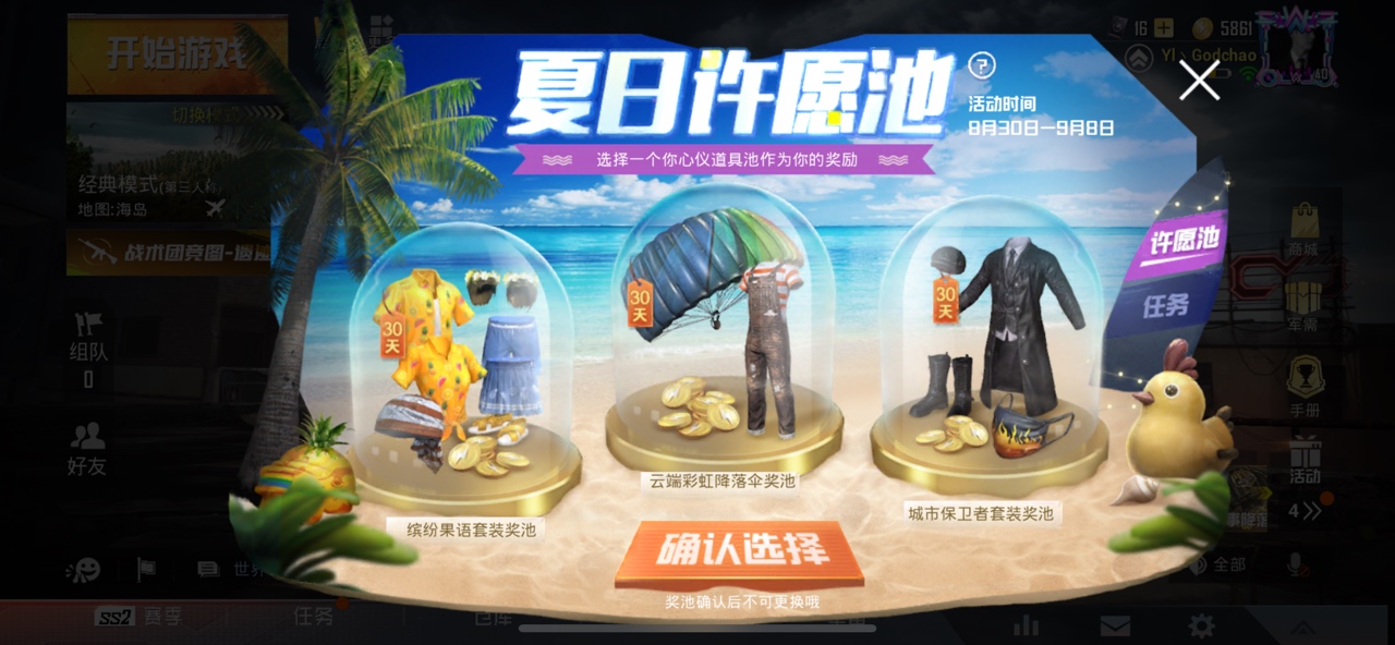 夏日许愿池:选择一个你心仪道具池,作为你的奖励。