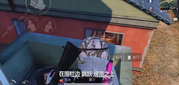 我们先进入一个二层小楼,上到二楼后阳台,通过围栏,跳上旁边的房顶。