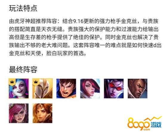 在了解云顶之弈怎么克制六贵族阵容之前,我们先了解下这个阵容的优势和缺点。六贵族双海克斯双枪手的最终阵容就是天使+盖伦+剑姬+VN+奥巴马+日女+金克斯+蔚,阵容的绝对核心是天使和金克斯,这个阵容的利用贵族的强力保护配个金克斯的超强输出可以在云顶之弈模式中遇神杀神遇佛杀佛,但是这个阵容的难点就是如何快速D出天使和金克斯这两个关键。