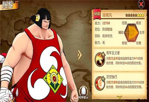 战桃丸的也是一名半肉半输出的角色,每回合的属伤炮击是补刀利器。坦度不低,不过比不上甚平和战国。不具备较高的减伤与锁血、恢复能力。天赋偏于攻击性,所以整体坦度肯定有所影响。