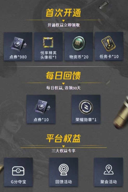 悦享卡是腾讯游戏特有的一种特权,和平精英开通悦享卡可以获得含有和平精英头像框这个奖励。