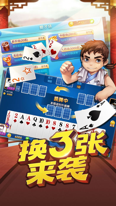 3、智勇三张游戏,具有独特的比牌规则,以手中的智勇三张比输赢。