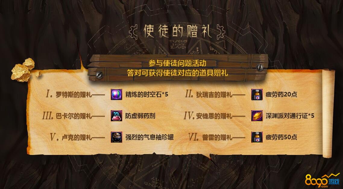共战十一载使徒问答赢豪礼活动时间是9月2日至9月7日,不过正式活动时间是在9月5日开始,目前只是预热阶段,在活动页面中玩家可以看到背景故事,根据背景故事回答相关的问题来获得对应的奖励,一共是6个问题,玩家可以获得奖励有5个精炼的时空石、20点抗疲劳药、防虚弱药剂、5张深渊派对通行证、强烈的气息袖珍罐和50点抗疲劳药。玩家需要按照顺序回答问题,在9月7日会开启编号十三的卷轴,届时玩家可以参与新的活动。