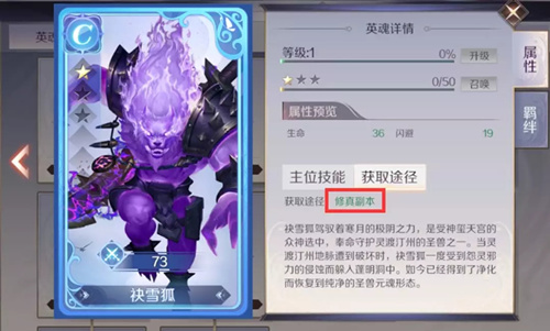 2、集齐50个英魂碎片后,可召唤出对应的1星英魂,英魂碎片通过修真副本和魂尘商店获得。