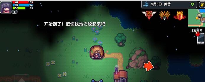 在玩家遇到雷雨或者以太风天气的时候,玩家只要跟旅馆老板对话选择进入避难所,当然也可以自己在万事屋买一个便携式的避难所,另外便携式避难所玩家在大使馆也有可能买到。