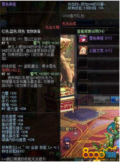 2018新春宠物就是去年的春节宠物,有雪兔和火狐两种选择,属性完全一样,就是外观不同而已,大家看喜欢哪个就换那个。