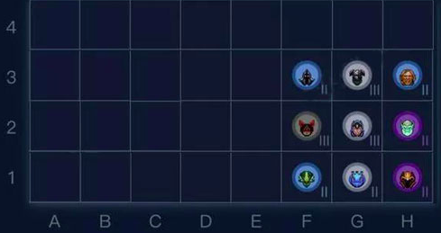 (3) 冥界亚龙靠外摆,因为冥界亚龙刺客跳后排,摆内摆外意义不带,也可以摆在A1位置拉输出