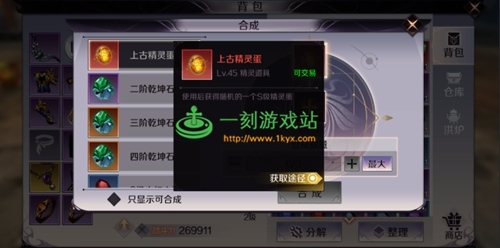 混沌精华是45级的精灵道具,集齐20个混沌精华,就可以在合成界面合成一个上古精灵蛋,打开上古精灵蛋,一定可以获得S级的精灵。