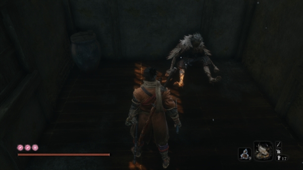 从有鬼佛苇名流道场的前方的房间出来后,打开隔扇进入内部,会遇到中BOSS苇名流佐濑甚助。