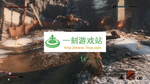 出来后在向房顶前进看到兽头瓦,利用钩绳挂住向上攀登,会播放动画,开始BOSS:苇名弦一郎的战斗。