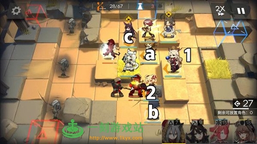 这关的难点也是在前期,图中abc中下上路会分别会按顺序出怪。