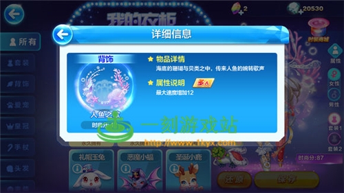 人鱼之歌是时装中的背饰,配带后可以增加12点时尚分;