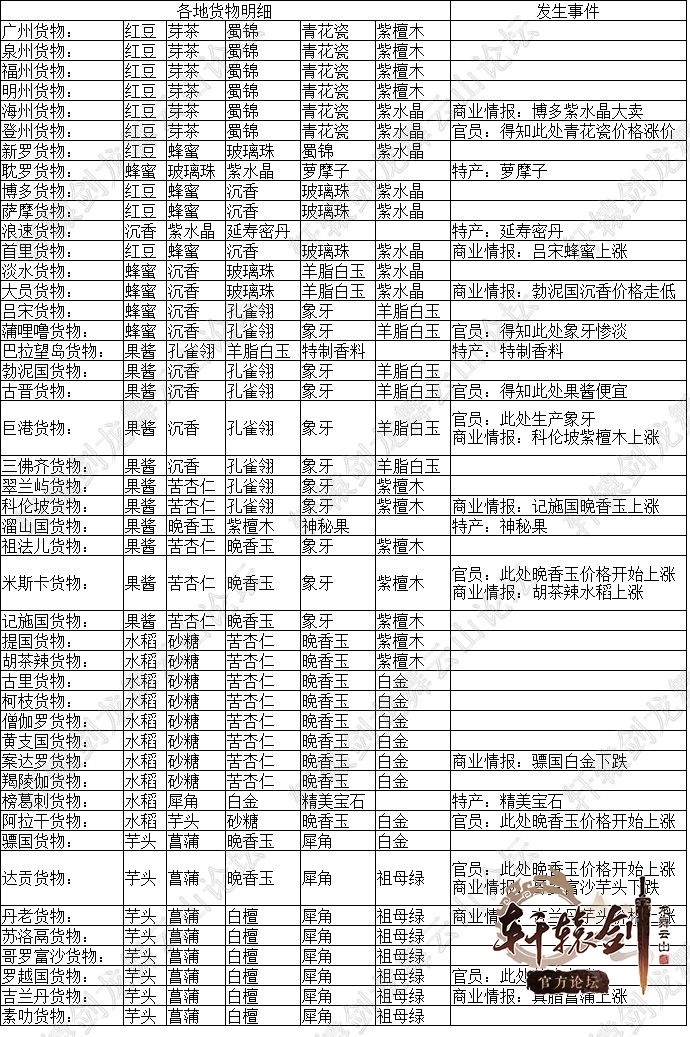 下图中,“发生事件”栏中的商业情报等信息可能是随机事件,且本数据仅适用于二测,后面的版本可能会改动,仅供参考。(不过从这里我们就可以看出商业情报的重要性)