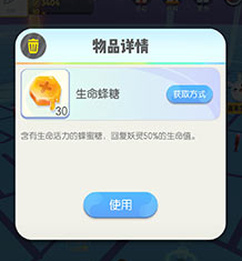 在背包里面可以找到生命蜂糖,然后点击使用,就可以复活你的妖灵了除此之外还能够恢复50%的生命值。