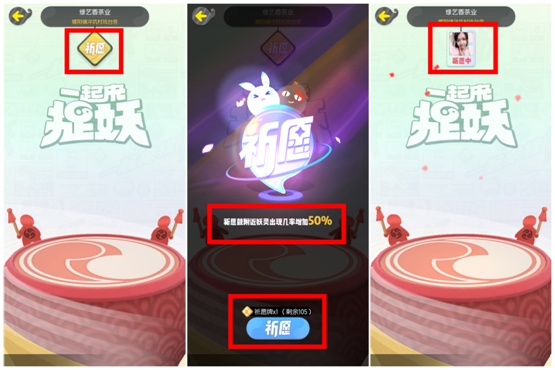 祈愿鼓上方有一个祈愿牌的添加位置,点击即可挂上祈愿牌。当挂上祈愿牌后,祈愿鼓会在30分钟内用祈愿的力量撒下花瓣,吸引附近的妖灵出现,妖灵出现的几率将提升50%!!并且所有玩家都可享受到此效果。