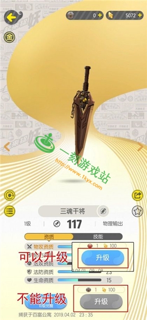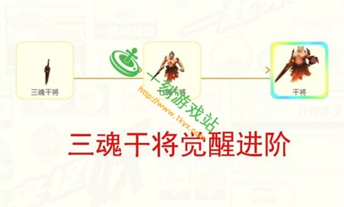 三魂干将虽然是一个剑形妖灵,但是它还能通过升级进行觉醒,当它升级到10级时,觉醒之后就进化为七魄干将,成为一个持剑的妖灵;从三魂到七魄的干将升级到30级,就觉醒进化干将了,一位铸剑的名师就出现了!