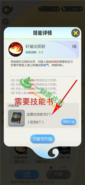 在妖灵的主界面上,资质另一边就是技能,技能在妖灵升级觉醒逐渐开启,而妖灵达到一定级别还能升级技能,最高能升级5级,让三魂干将系列的妖灵发动技能攻击最大伤害值,需要通过相应属性的技能书才能升级,技能书需要通过训练师任务来获取。