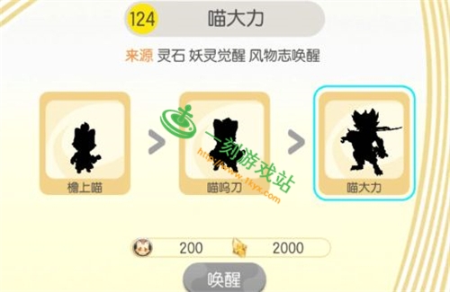 这二位都是金属性妖灵。喵大力可以通过花费200喵呜符印+2000灵石的代价进行唤醒,但是考虑到这种代价太过高昂,并不推荐。另一种就是看"欧气"的灵石唤醒模式。最后当然也可以选择最笨但也最有效的妖灵唤醒,从檐上喵到喵呜刀再到喵大力一步步培养而来。