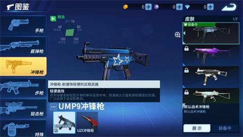 冲锋枪在游戏中有两款,UMP9冲锋枪以及UZI冲锋枪。虽然冲锋枪拥有射速快,换弹快的特点,但是因为其伤害低,中远距离作战发挥不了优势等原因,不考虑作为必备枪械之一。如果冲锋枪以颜色等级压制的情况下,推荐这把UMP9冲锋枪,其拥有步枪的诸多特点,且稳定性大,精度较高,射程远等优势,可以在前期枪械稀有的情况下,优先选择这把枪。