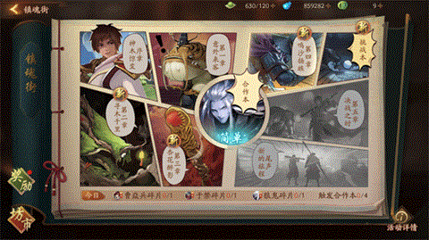 在《神都夜行录》与《镇魂街》的联动中,当降妖师们攻略活动日常副本,可以获得“灵槐枝”、“龙桃果”等活动道具,以及灵海点。降妖师们可以使用“灵槐枝”、“龙桃果”在活动商店中兑换混沌洪源、金色突破素材等珍稀奖励。另外,通过收集灵海点更可累计获得16个玉璧、21个青团食盒、5张SSR拓印“赴汤蹈火”、5个镇魂街碎片任选礼包、2个混沌洪源以及1个幽都神藏等海量道具奖励。