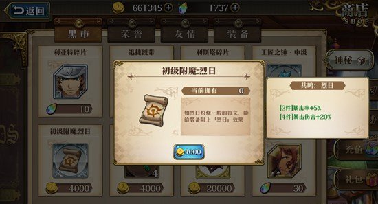 中级附魔卷轴、高级附魔卷轴的主要来源是【商城】-【神秘】-【装备】中,使用光辉秘银石或秘银石来获取高级附魔卷轴、中级附魔卷轴。